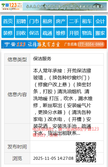 本人常年承接:开荒保洁擦玻璃,(换各种纱窗纱门)(修窗户改上悬)(换密封条,打胶)清洗油烟机 清洗地暖 打压,吹水,漏水维修,断丝取出(安装暖气片,更换分水器)(清洗各种家电)改水电,(开槽)安装花洒,安装洗手池,疏通下水,货运出租