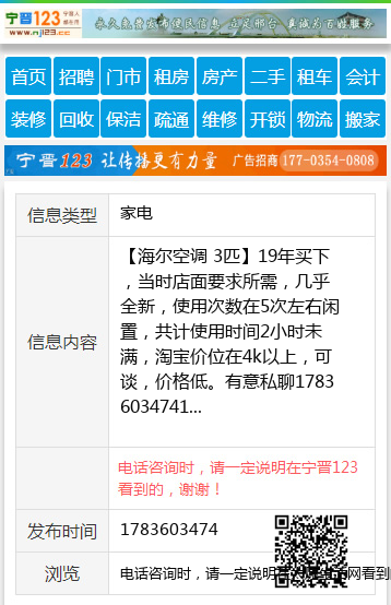 【海尔空调 3匹】19年买下,当时店面要求所需,几乎全新,使用次数在5次左右闲置,共计使用时间2小时未满,淘宝价位在4k以上,可谈,价格低。有意私聊17836034741