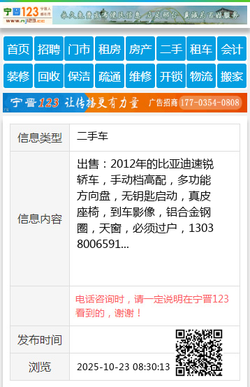 出售:2012年的比亚迪速锐轿车,手动档高配,多功能方向盘,无钥匙启动,真皮座椅,到车影像,铝合金钢圈,天窗,必须过户,13038006591 【电话咨询时,请一定说明在太原生活网看到的,谢谢!】 |