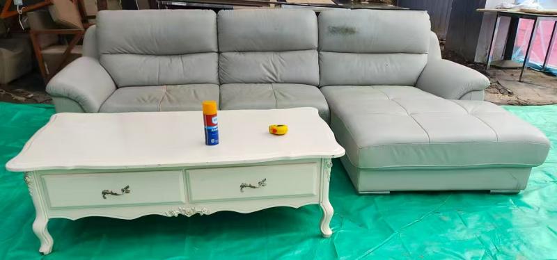 真皮沙发和实木茶几(如图),沙发长3米,贵妃长1.8.茶几长1.5米,宽80公分,高47公分,沙发有明显使用痕迹,两件450元,需要的联系13934081441