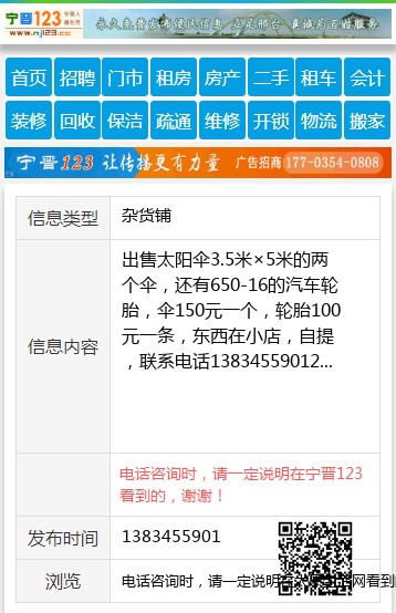 出售太阳伞3.5米×5米的两个伞,还有650-16的汽车轮胎,伞150元一个,轮胎100元一条,东西在小店,自提,联系电话13834559012