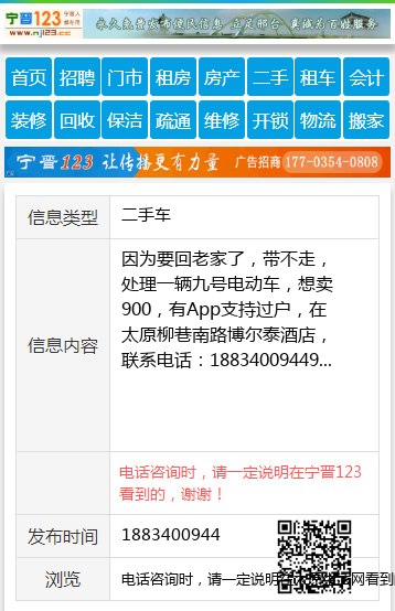 因为要回老家了,带不走,处理一辆九号电动车,想卖900,有App支持过户,在太原柳巷南路博尔泰酒店,联系电话:18834009449