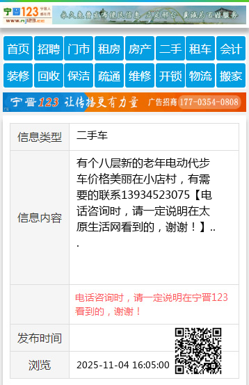 免责声明:本栏目信息由网友自行发布,太原生活网不承担任何责任!提高警惕,谨防诈骗!做推广、做信息置顶!请加太原生活网客服微信:taiyuanwangzhan
