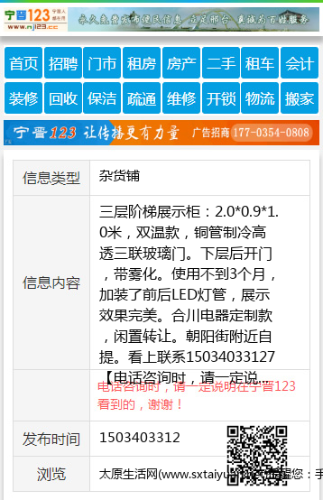 三层阶梯展示柜:2.0*0.9*1.0米,双温款,铜管制冷高透三联玻璃门。下层后开门,带雾化。使用不到3个月,加装了前后LED灯管,展示效果完美。合川电器定制款,闲置转让。朝阳街附近自提。看上联系15034033127 【电话咨询时,请一定说明在太原生活网看到的,谢谢!】 |