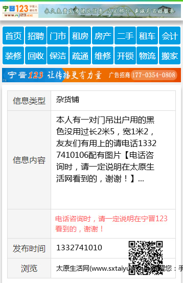 本人有一对门吊出户用的黑色没用过长2米5,宽1米2,友友们有用上的请电话13327410106配有图片 【电话咨询时,请一定说明在太原生活网看到的,谢谢!】 |
