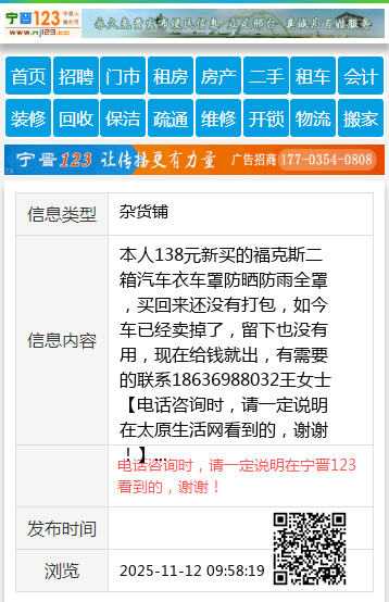 本人138元新买的福克斯二箱汽车衣车罩防晒防雨全罩,买回来还没有打包,如今车已经卖掉了,留下也没有用,现在给钱就出,有需要的联系18636988032王女士 【电话咨询时,请一定说明在太原生活网看到的,谢谢!】 |
