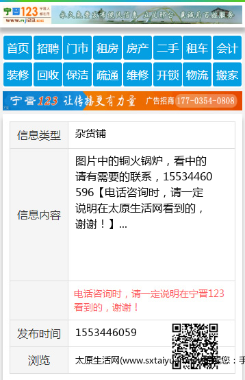 免责声明:本栏目信息由网友自行发布,太原生活网不承担任何责任!提高警惕,谨防诈骗!做推广、做信息置顶!请加太原生活网客服微信:taiyuanwangzhan