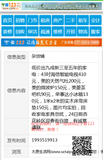 低价出九成新三至五年的家电:43吋海信智能电视410元,美的天然气灶200元,美的微波炉150元,美菱茶吧机90元,荣事达小冰箱130元,1米x2米的实木床带床垫150元,图片均实拍,回收家电家具勿扰,24日前杏花岭区迎春街自提,有诚意请联系19935199131(同微) 【电话咨询时,请一定说明在太原生活网看到的,谢谢!】 |