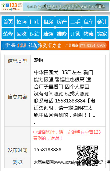 中华田园犬 35斤左右 看门能力极强 警惕性也很高 适合厂子里看门 因个人原因 没有时间照顾 现找人照顾 联系电话 15581888884