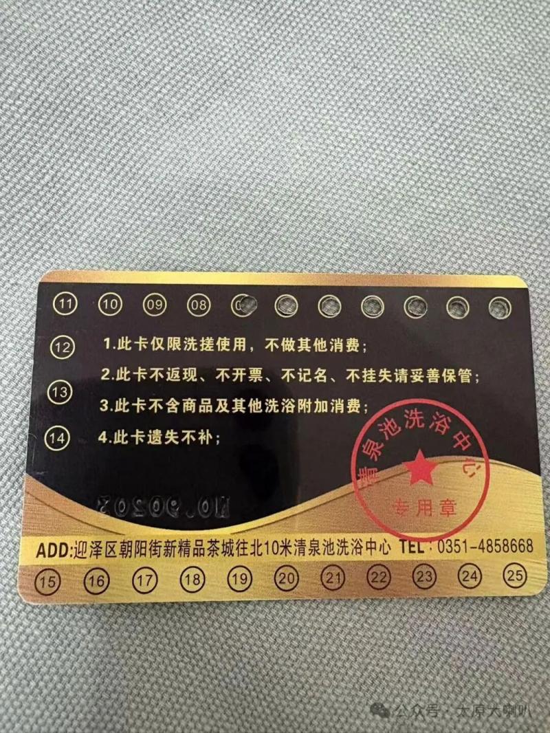 清泉池洗浴中心的不记名洗澡卡一次20元包含洗加搓背还有18次,我搬家了离的太远,有需要的联系18135183631