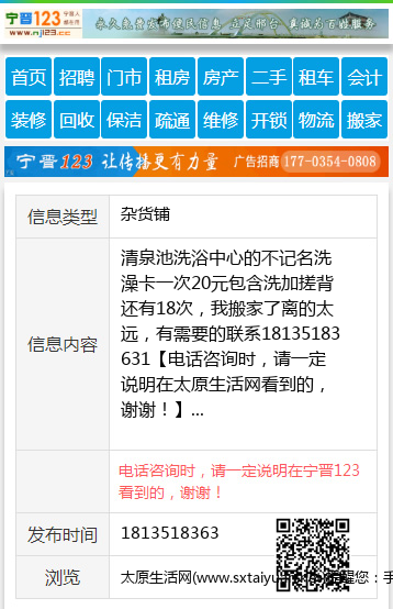 免责声明:本栏目信息由网友自行发布,太原生活网不承担任何责任!提高警惕,谨防诈骗!做推广、做信息置顶!请加太原生活网客服微信:taiyuanwangzhan