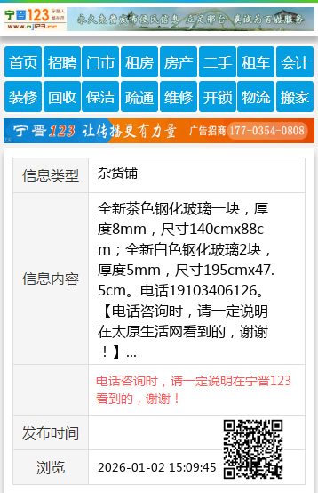 全新白色钢化玻璃2块,厚度5mm,尺寸195cmx47.5cm。电话19103406126。 【电话咨询时,请一定说明在太原生活网看到的,谢谢!】 |