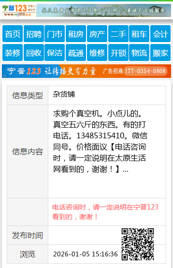 免责声明:本栏目信息由网友自行发布,太原生活网不承担任何责任!提高警惕,谨防诈骗!做推广、做信息置顶!请加太原生活网客服微信:taiyuanwangzhan