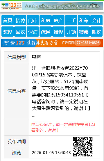 出一台联想拯救者2022Y7000P15.6英寸笔记本,钛晶灰,i7处理器,512g固态硬盘,买下没怎么用99新,有需要的联系15034110551 【电话咨询时,请一定说明在太原生活网看到的,谢谢!】 |