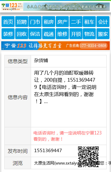 免责声明:本栏目信息由网友自行发布,太原生活网不承担任何责任!提高警惕,谨防诈骗!做推广、做信息置顶!请加太原生活网客服微信:taiyuanwangzhan