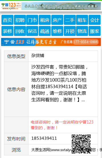 免责声明:本栏目信息由网友自行发布,太原生活网不承担任何责任!提高警惕,谨防诈骗!做推广、做信息置顶!请加太原生活网客服微信:taiyuanwangzhan