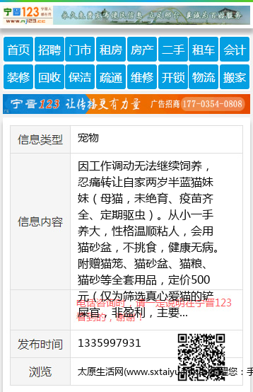 免责声明:本栏目信息由网友自行发布,太原生活网不承担任何责任!提高警惕,谨防诈骗!做推广、做信息置顶!请加太原生活网客服微信:taiyuanwangzhan