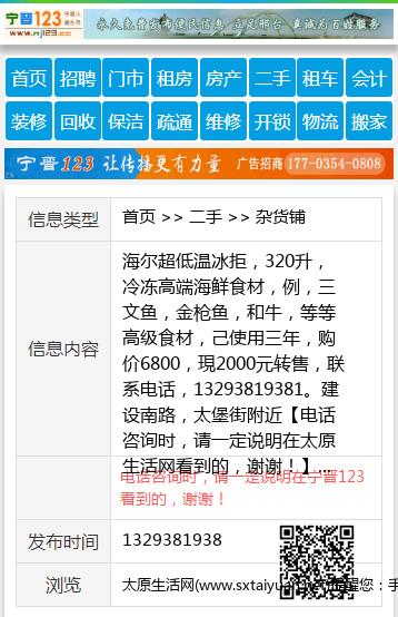 海尔超低温冰拒,320升,冷冻高端海鲜食材,例,三文鱼,金枪鱼,和牛,等等高级食材,己使用三年,购价6800,現2000元转售,联系电话,13293819381。建设南路,太堡街附近 【电话咨询时,请一定说明在太原生活网看到的,谢谢!】 |