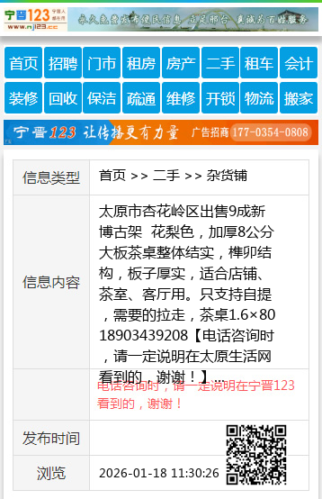 太原市杏花岭区出售9成新 博古架 花梨色,加厚8公分大板茶桌整体结实,榫卯结构,板子厚实,适合店铺、茶室、客厅用。只支持自提,需要的拉走,茶桌1.6×80