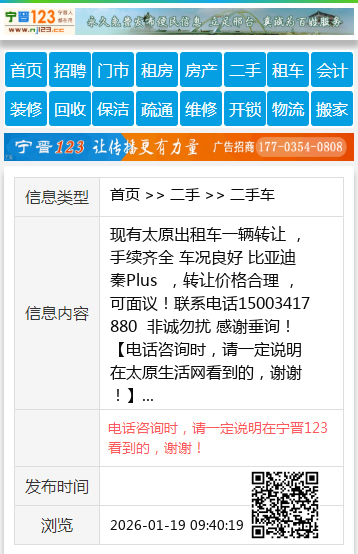 现有太原出租车一辆转让 ,手续齐全 车况良好 比亚迪秦Plus ,转让价格合理 ,可面议!