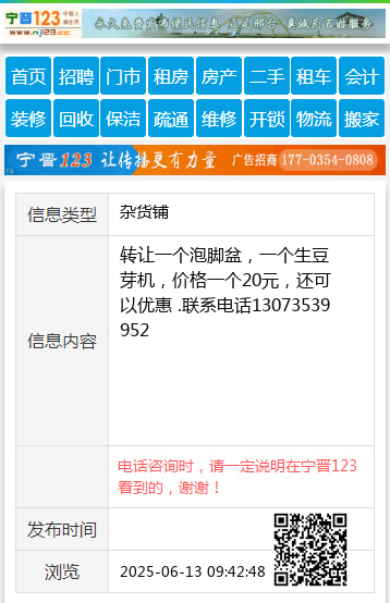 转让一个泡脚盆,一个生豆芽机,价格一个20元,还可以优惠 .联系电话13073539952 【电话咨询时,请一定说明在太原生活网看到的,谢谢!】 |