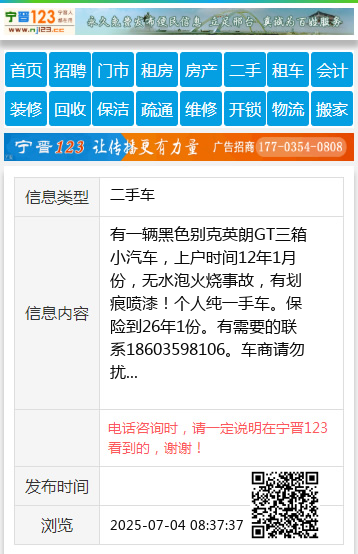 有一辆黑色别克英朗GT三箱小汽车,上户时间12年1月份,无水泡火烧事故,有划痕喷漆!个人纯一手车。保险到26年1份。有需要的联系18603598106。车商请勿扰 【电话咨询时,请一定说明在太原生活网看到的,谢谢!】 |