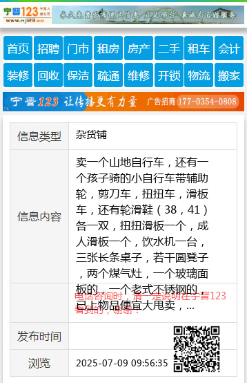 卖一个山地自行车,还有一个孩子骑的小自行车带辅助轮,剪刀车,扭扭车,滑板车,还有轮滑鞋(38,41)各一双,扭扭滑板一个,成人滑板一个,饮水机一台,三张长条桌子,若干圆凳子,两个煤气灶,一个玻璃面板的,一个老式不锈钢的,已上物品便宜大甩卖,给钱就卖,有需要的可以联系我看图片,联系方式13653684099,微信同号 【电话咨询时,请一定说明在太原生活网看到的,谢谢!】 |