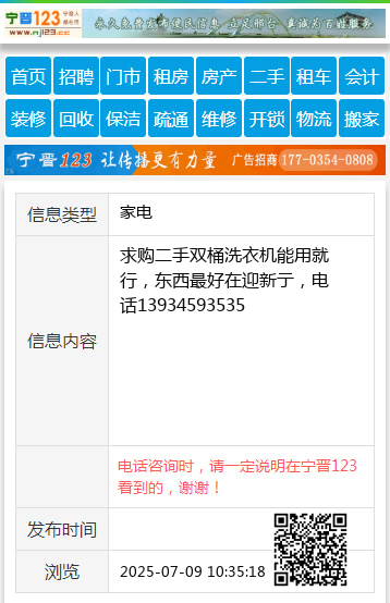 求购二手双桶洗衣机能用就行,东西最好在迎新亍,电话13934593535