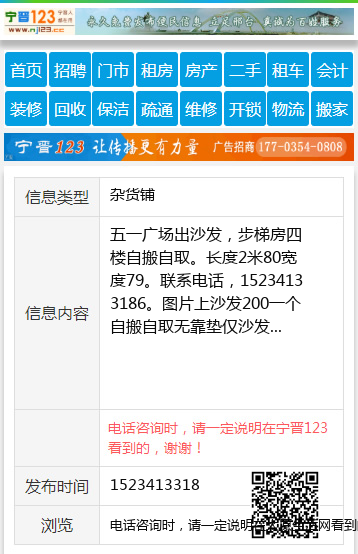五一广场出沙发,步梯房四楼自搬自取。长度2米80宽度79。联系电话,15234133186。图片上沙发200一个自搬自取无靠垫仅沙发 【电话咨询时,请一定说明在太原生活网看到的,谢谢!】 |