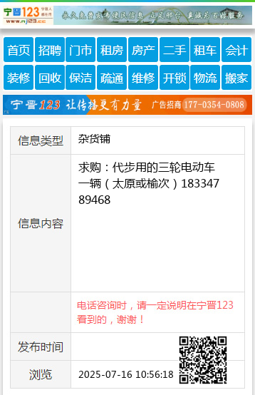 求购:代步用的三轮电动车一辆(太原或榆次)18334789468