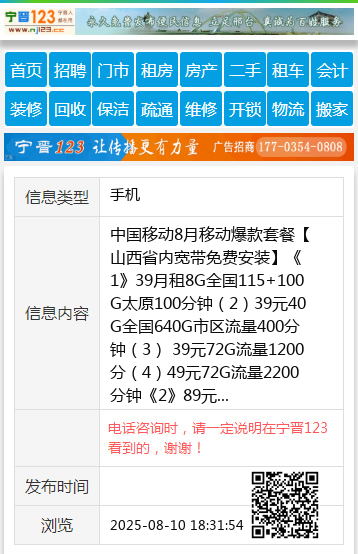 《1》39月租8G全国115+100G太原100分钟