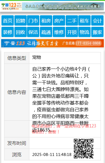 太原市小店区平阳路西一巷附近18635168393 【电话咨询时,请一定说明在太原生活网看到的,谢谢!】 |