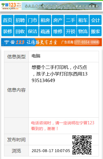 想要个二手打印机,小巧点,孩子上小学打印东西用13935134649