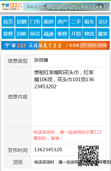 想租红军帽和花头巾,红军帽106顶,花头巾101顶13623453202 【电话咨询时,请一定说明在太原生活网看到的,谢谢!】 |