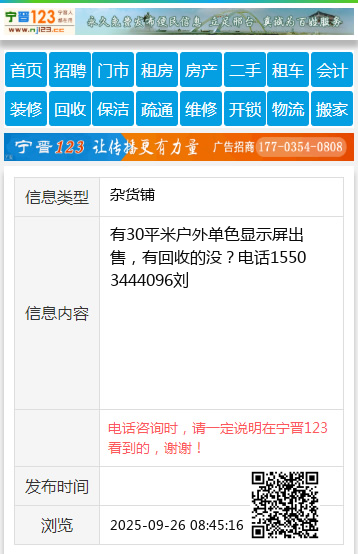 有30平米户外单色显示屏出售,有回收的没?电话15503444096刘