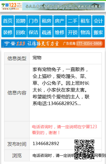 家有宠物兔子,一直散养,会上猫砂,爱吃馒头、菜、草、小公兔子。因上班时长太长,小家伙在家里太害。希望能找个爱他的主人,联系电话:13466828925 【电话咨询时,请一定说明在太原生活网看到的,谢谢!】 |