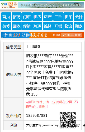 免责声明:本栏目信息由网友自行发布,太原生活网不承担任何责任!提高警惕,谨防诈骗!做推广、做信息置顶!请加太原生活网客服微信:taiyuanwangzhan
