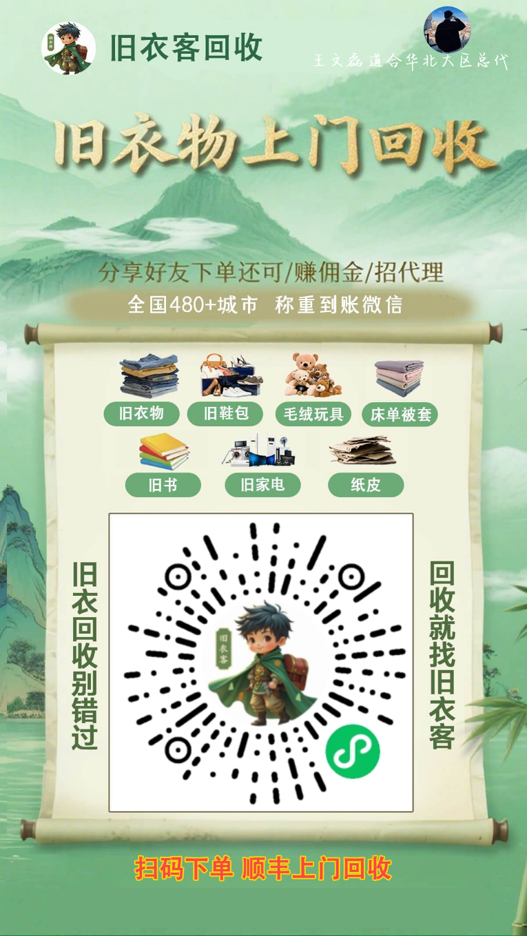 旧衣服????鞋子????包包???? 毛绒玩具????床单被罩????️ 书本????家具????️家电???? 全国顺丰免费上门回收换???? 直接打款结算到账微信 小程序一键????预约下单 0 元就可做代理赚佣金 有想法的联系我 15383601434