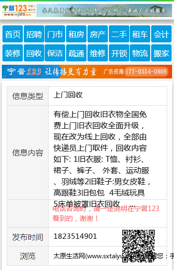 免责声明:本栏目信息由网友自行发布,太原生活网不承担任何责任!提高警惕,谨防诈骗!做推广、做信息置顶!请加太原生活网客服微信:taiyuanwangzhan