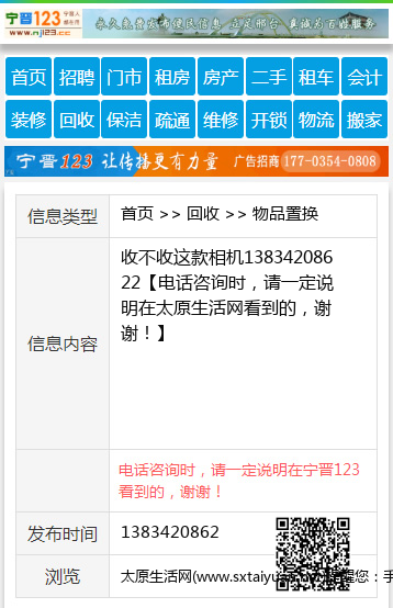 免责声明:本栏目信息由网友自行发布,太原生活网不承担任何责任!提高警惕,谨防诈骗!做推广、做信息置顶!请加太原生活网客服微信:taiyuanwangzhan