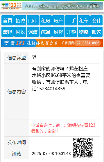 有刮家的师傳吗?我在松庄水峪小区86.68平米的家需要收拾,有师傅联系本人,电话15234014359