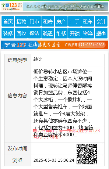 低价急转小店区市场滩位一个生意稳定,因本人没时间料理,现转让马师傅香酥鸡锁骨加盟品牌,东西包括4个大冰柜,一个搅拌机,一个大型售卖推车,一个烤面筋推车,一个4层大货架,还有其他零碎东西有不少,(包括加盟费3000,烤面筋和臭豆腐技术4000) 【电话咨询时,请一定说明在太原生活网看到的,谢谢!】 |