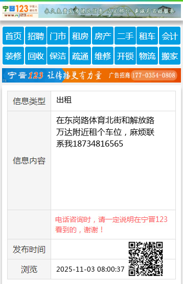 在东岗路体育北街和解放路万达附近租个车位,麻烦联系我18734816565