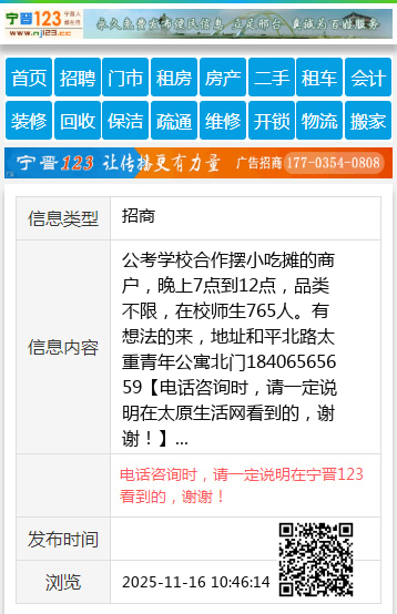 公考学校合作摆小吃摊的商户,晚上7点到12点,品类不限,在校师生765人。有想法的来,地址和平北路太重青年公寓北门
