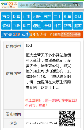 恒大金碧天下多多驿站兼便利店转让,快递量稳定,设备齐全,接手可盈利。感兴趣的朋友可以电话咨询,13303464218。 【电话咨询时,请一定说明在太原生活网看到的,谢谢!】 |