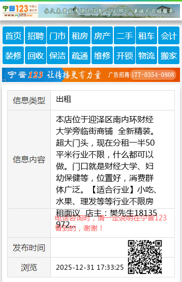 本店位于迎泽区南内环财经大学旁临街商铺 全新精装。超大门头,现在分租一半50平米行业不限,什么都可以做。门口就是财经大学、妇幼保健等,位置好,消费群体广泛。【适合行业】小吃、水果、理发等等行业不限房租面议 店主:樊先生