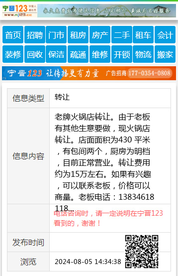 店面面积为430 平米,有包间两个,厨房为明档,目前正常营业。