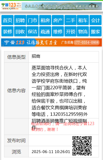蒸菜面馆寻找合伙人,本人全力投资出房,在新时代双语学校学府东街地铁口,纯一层门面220平简装,望有经验的面案炒菜师傅合作,给保底干股,也可以出租,适合餐饮文具棋牌培训美容等电话,13203512959另外招聘酒类销售推广短视频制作 【电话咨询时,请一定说明在太原生活网看到的,谢谢!】 |