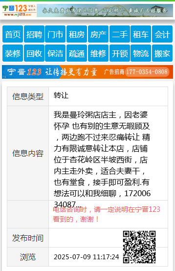 我是曼玲粥店店主,因老婆怀孕 也有别的生意无暇顾及,两边跑不过来忍痛转让 精力有限诚意转让本店,店铺位于杏花岭区半坡西街,店内主走外卖,适合夫妻干,也有堂食,接手即可盈利.有想法可以和我细聊,17200634087 【电话咨询时,请一定说明在太原生活网看到的,谢谢!】 |