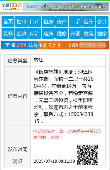 《饭店急转》地址:迎泽区桥东街,面积一二层一共260平米,年租金14万,店内装潢设备齐全,有稳定客源,无需二次投资,接手即可盈利,欢迎有志之士前来考察,联系方式:15903433815 【电话咨询时,请一定说明在太原生活网看到的,谢谢!】 |